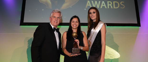 Nena Huwae, Golfasian European advertising and marketing manager was presented with the trophy by Steve Rider, the evening's host and former anchor for the BBC's golf coverage.